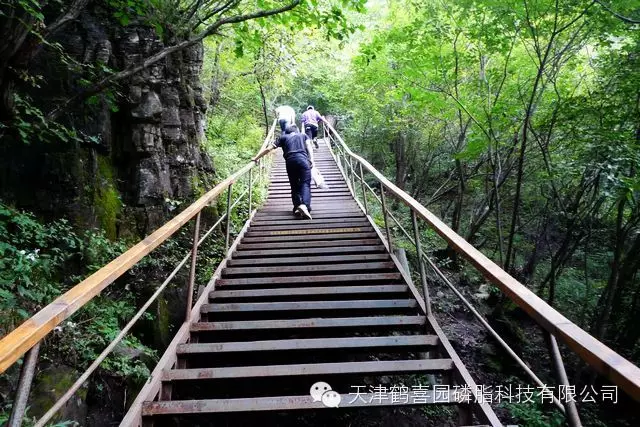 百里峡天梯共2947阶,全长1200米,相对高度270米。天梯是连接海棠峪峡谷与十悬崖峡谷之间的一条路段。台阶上记载着公元前后的历史重大事件与文献类对中国有影响的元年记录,一开始大家都是卯足了劲一路攀登,此时男同事的优势就体现出来了,落在队伍后面的永远都是女同事,幸好攀爬在前面的男同事主动停下来帮助落在后面的女同事和家属一起攀登。不得不说,女同事们, 不仅要工作上进,也要加强体育锻炼哦。